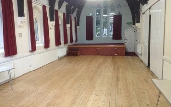 Various-sized rooms are available for hire with adjoining kitchen. Room capacities from 10 to 80 people. All ground-floor rooms are accessible. The largest room is good for children's birthday parties. Car parking is available.