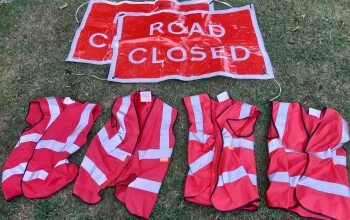 ✅ Two ‘ROAD CLOSED’ signs with bungee straps to secure them