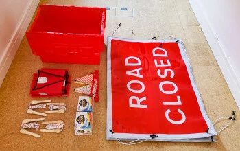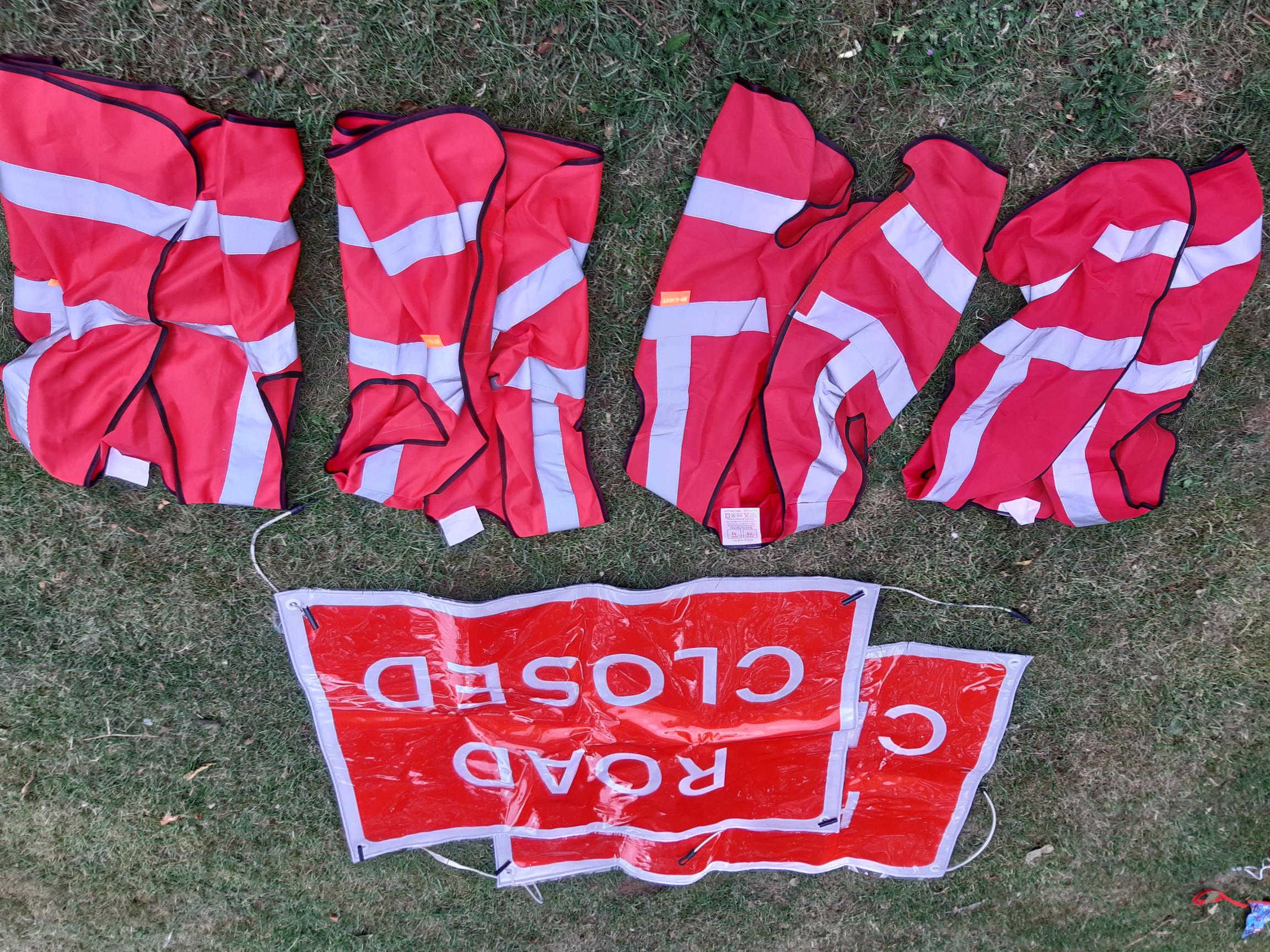 ✅ Two ‘ROAD CLOSED’ signs with bungee straps to secure them